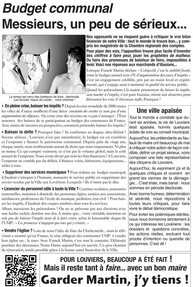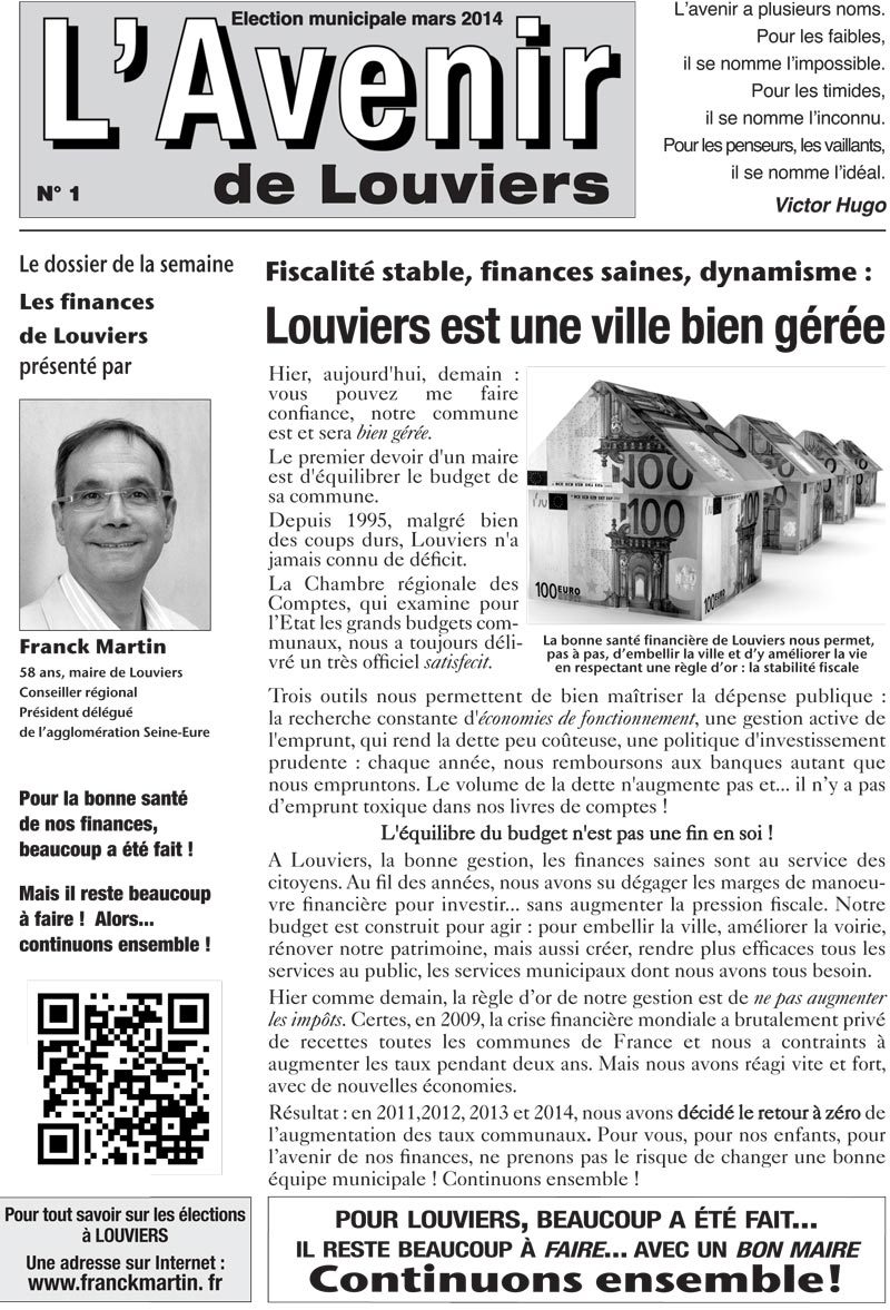 C'est donc avec gourmandise et délectation que je distribue, avec mes amis, le premier numéro de notre journal de campagne : l'Avenir de Louviers.