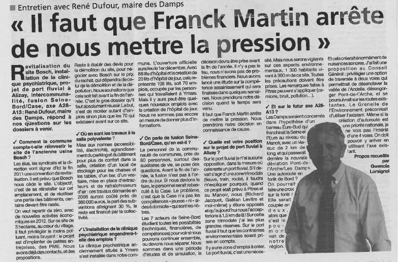 Au Nord de la Seine, la partie se joue dans le contexte de deux projets majeurs portés par l'Etat et les collectivités territoriales. Il appartient à notre bassin d'emploi de tirer son épingle du jeu et de ne pas manquer l'opportunité exceptionnelle que représente l'arrivée de la liaison autoroutière A28 A 13 et le projet d'aménagement de l'axe Seine dans le cadre du Grand Paris.