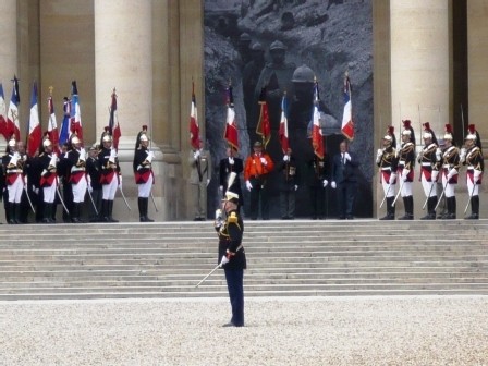 Le porte drapeau national des GARIBALDIENS, Eugène LOCATELLI était au centre de l'entrée des Invalides, sous le grand poster des Poilus entouré de la Garde Républicaine, le Président National des Garibaldiens et Engagés Volontaires Etrangers, Philippe GUISTINATI était invité dans le carré des officiels du gouvernement et du Président de la République, le président des Alpini en France, Renato ZULLIANI, membre du bureau des Garibaldiens était invité dans le carré de la famille.