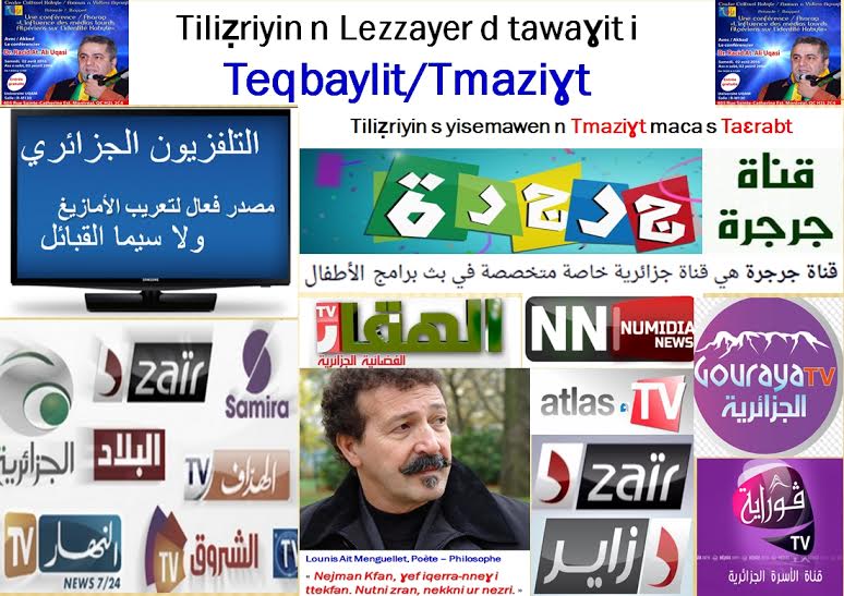 TOUTES ces chaines parlent donc aux Kabyles/Amazighs seulement en langue Arabe. Tamazight elle n'en possède que 0.1% de place. Exactement comme son enseignement facultatif, qui dure encore malgré son caractère officieux dans la nouvelle constitution.