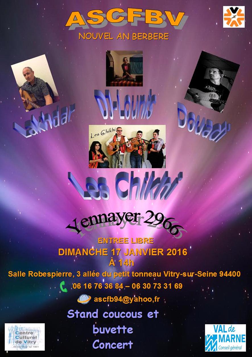 L'Association Socio Culturelle Franco Berbère de Vitry-sur-Seine, ASCFBV,organise le nouvel an Berbère 2016