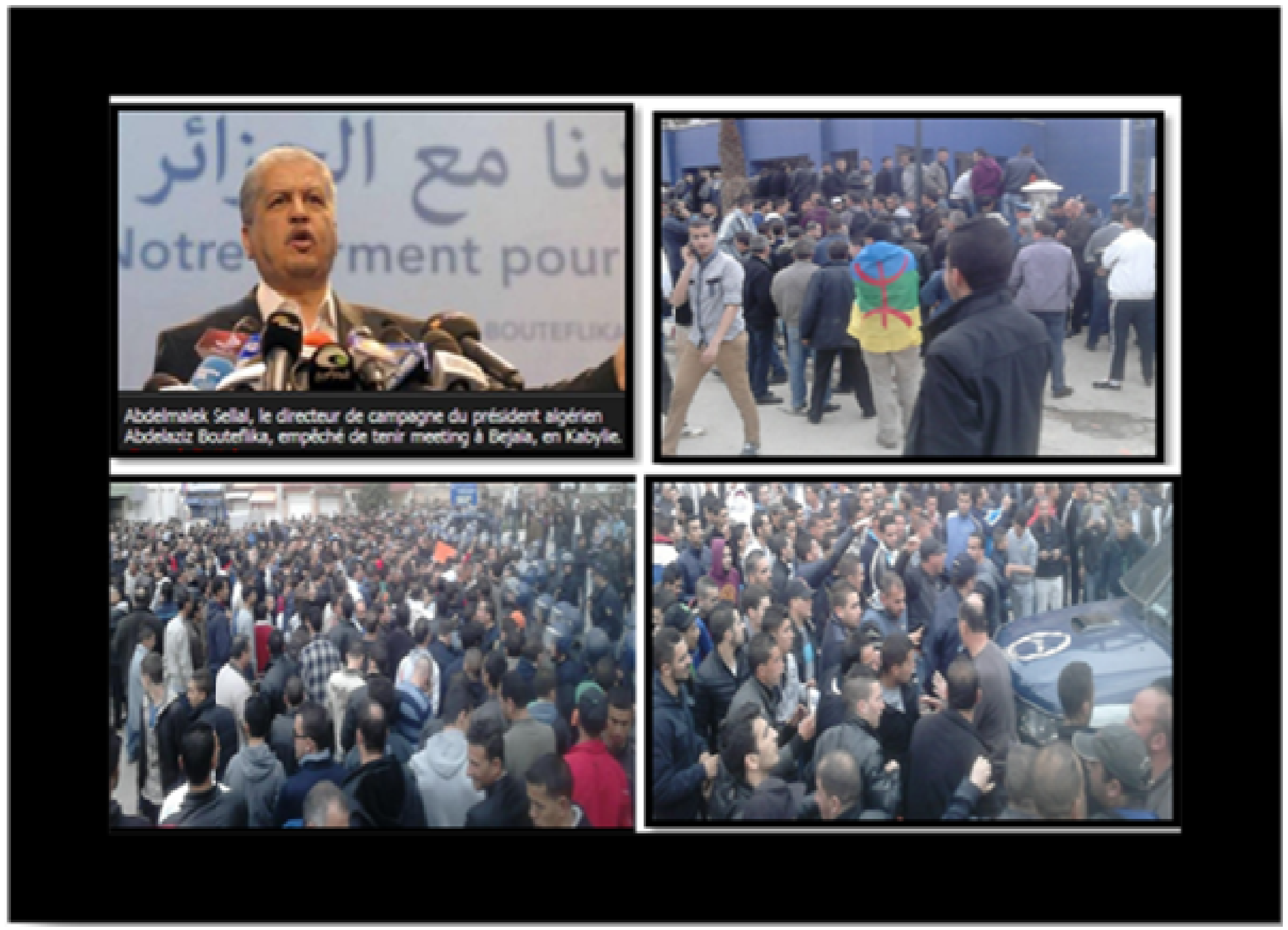 L'agence de presse algérienne, APS, a rapporté les termes en lesquels l'empêchement du meeting de Sella a été empêché à Vgayet. La direction de la communication de la candidature de Bouteflika a condamné "les actes d'agressions commis par des groupuscules fascistes comportant parmi eux des éléments de Barakat et du MAK".