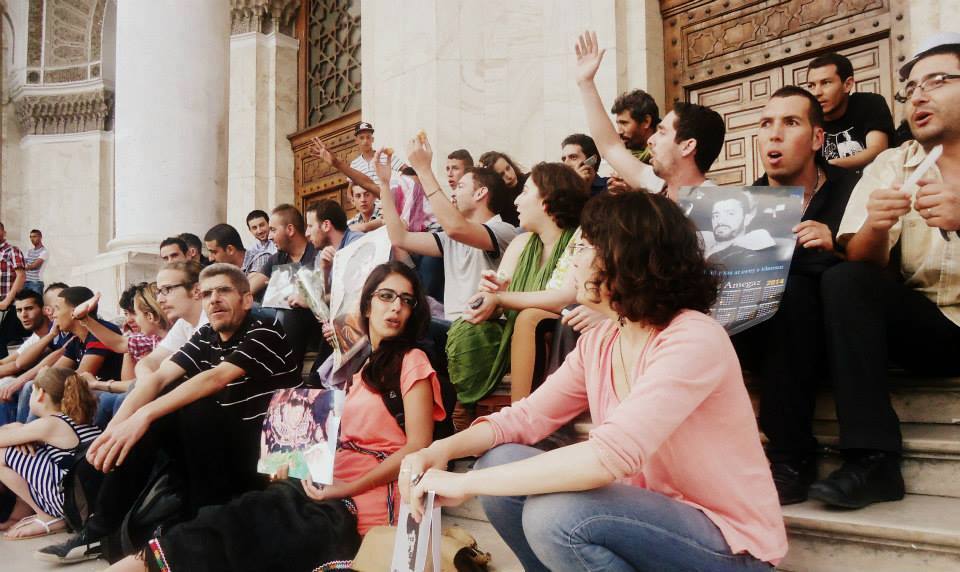 Sarah Haidar (au centre, avec ses lunettes) à un allumage de bougies en hommage à Lounès Matoub, le 24 juin dernier à la grande poste d'Alger, après "l'empêchement de la journée culturelle" par la wilaya d'Alger (PH/DR)