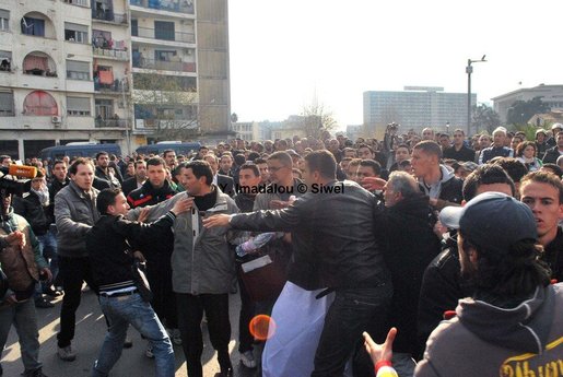 Altercation entre manifestants et jeunes partisans du Chef de l'État algérien Bouteflika le 12 février 2011 (Photo SIWEL)