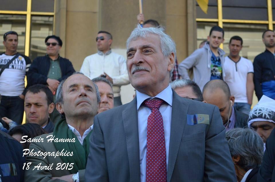 Ferhat Mehenni, le 18 avril au Trocadéro lors du lever officiel du drapeau kabyle, à l'avant-veille des gigantesques manifestations du 20 avril 2015, organisées par le MAK en Kabylie ( PH/ S. Hamma)