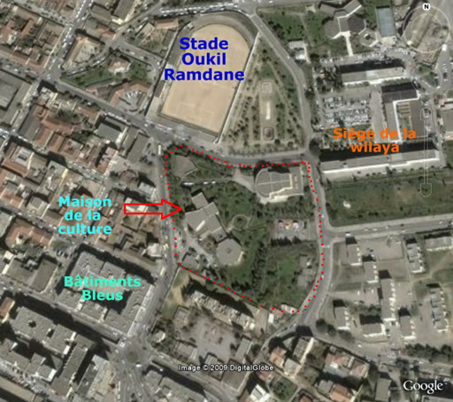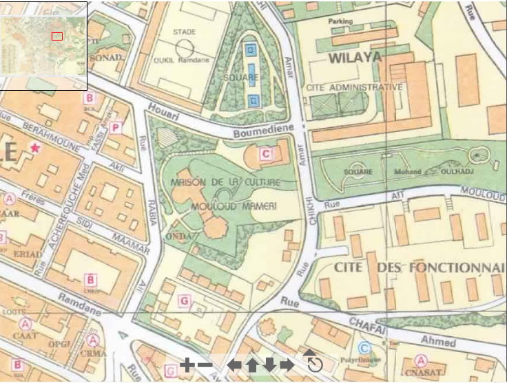 Plan de la ville de Tizi-Ouzou avec la Maison de la Culture et la Cité administrative, siège de la Wilaya (PH/DR)