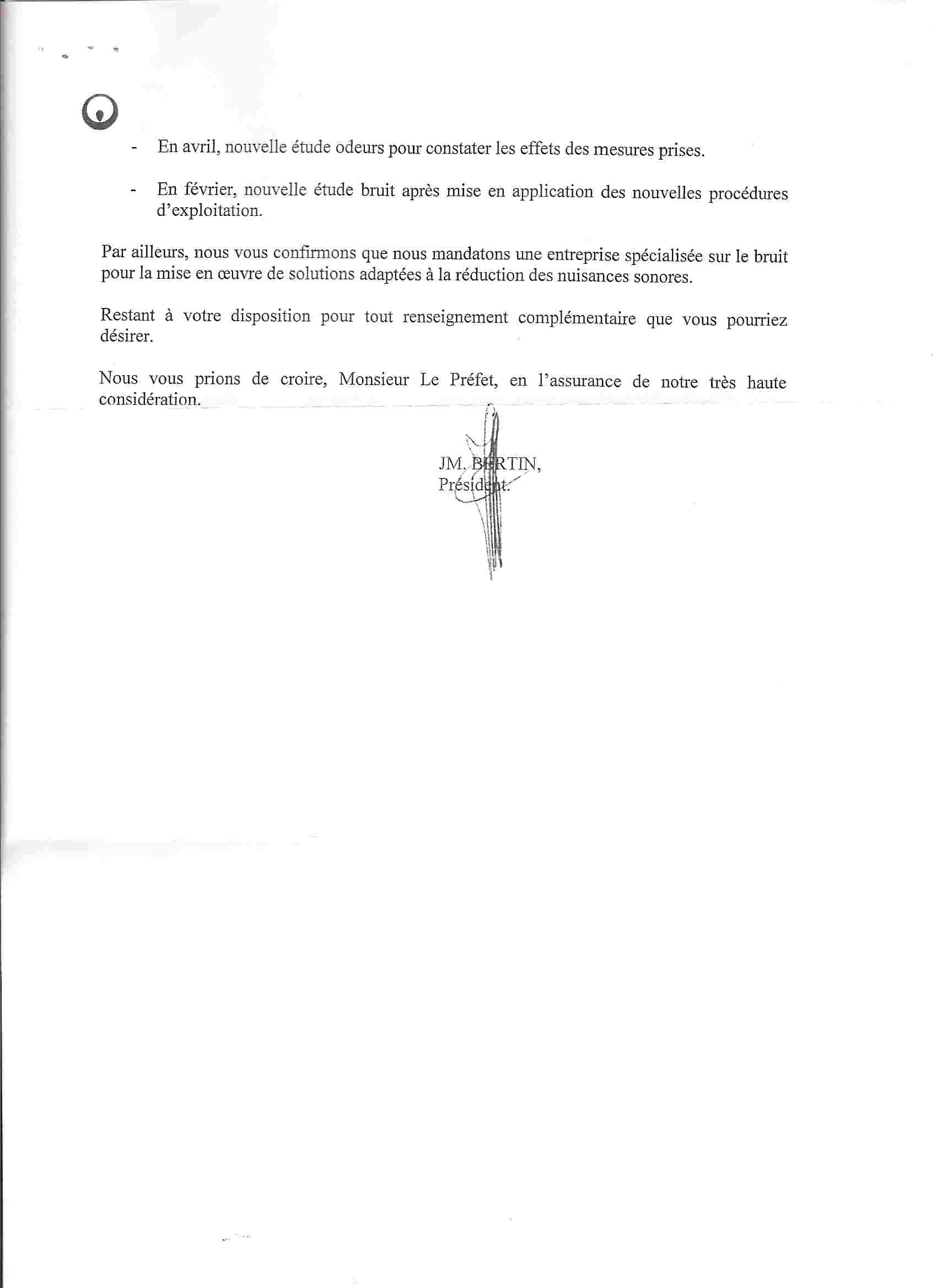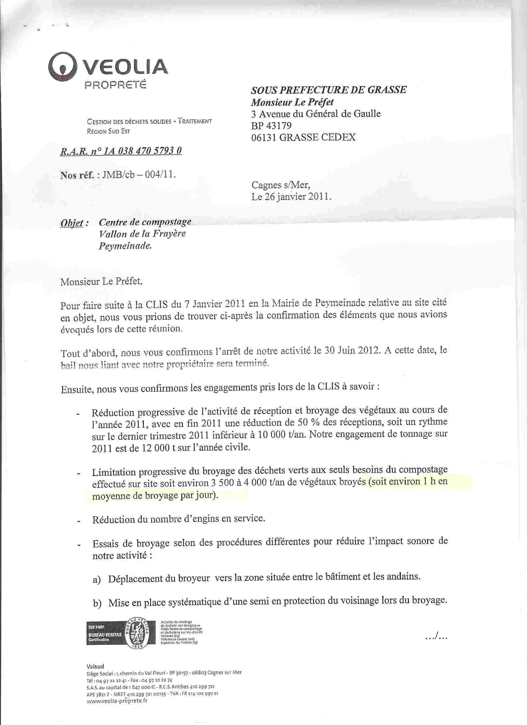 • Lettre d'engagement de la société VEOLIA indiquant leur départ du site en 2012