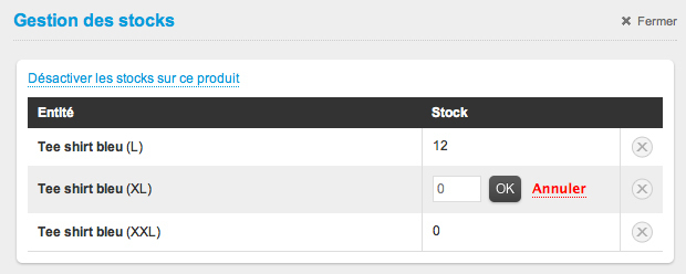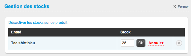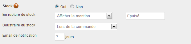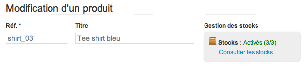 Cela se gère par produits, entrez dans une fiche produit, un nouveau bloc gestion des Stocks est désormais visible dans la colonne de droite. Deux cas peuvent se présenter :