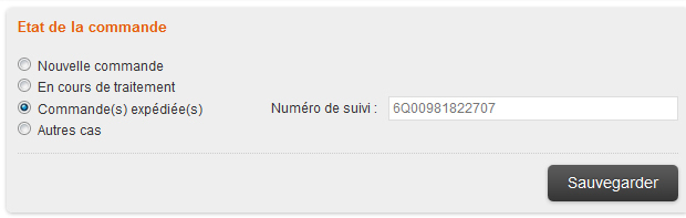 Pour cela remplissez le champ Numéro de suivi puis sauvergardez.