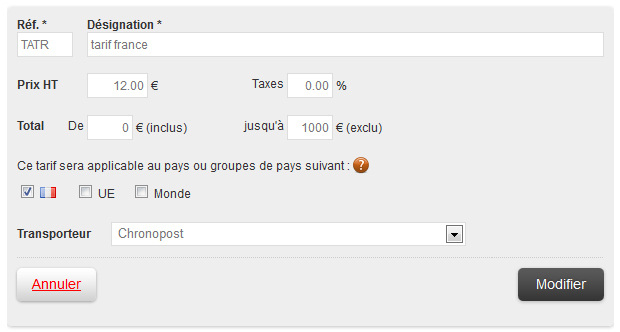 Toujours dans le menu Webservices > Boutique > Tarification transports, mais dans l'onglet Tarif, ajoutez le transporteur utilisé à vos tarifs existants.