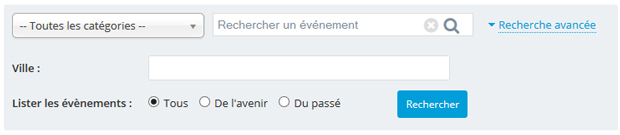 La liste des derniers évènements est affichée en permanence, mais vous pouvez utiliser le moteur de recherche afin d'afficher ou de retrouver une catégorie particulière ou un évènement précis passé ou futur.