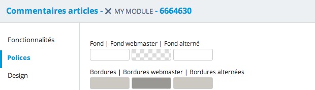Caractéristiques des commentaires (cookies, couleurs, webmaster)