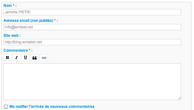 3. Notifier l'arrivée de nouveaux commentaires Un visiteur déposant un commentaire peut vouloir être averti si d'autres commentaires sont postés ultérieurement. Il lui suffit alors de cocher l'option correspondante pour être notifié par email. Il pourra dans chaque email de notification cliquer sur un lien pour ne plus être notifié.