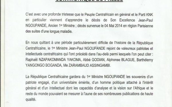 RCA : Déclaration du KNK sur la "coresponsabilité du MPLC et de l'ex-FARE dans la crise"