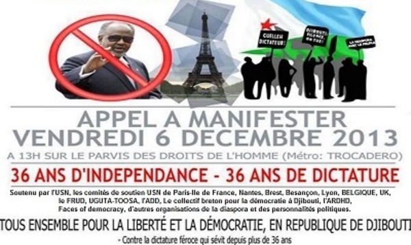 Appel pour la manifestation du 6 décembre à Paris contre le dictateur de Djibouti