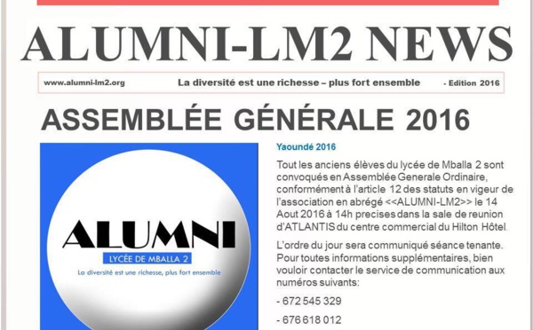 Conformément à l'article 12 de leur association,les anciens élèves du lycée de Mballa2 sont attendus le 14 aout 2016 à...