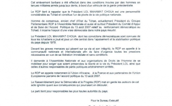 Communiqué de presse du Rassemblement pour la Démocratie et le Progrès