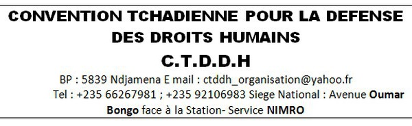 La Convention Tchadienne pour la Défense des Droits de l’Homme (C.T.D.D.H) informe le public qu’avec les intimidations...