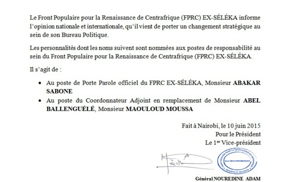 COMMUNIQUE DE PRESSE No 001/CNSP/ CP/06/15/NG Afin d’harmoniser nos positions, lutter contre la désagrégation des...