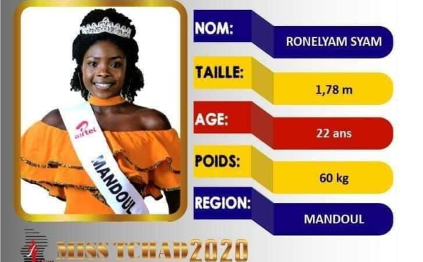 Ronelyam Syam est la nouvelle Miss Tchad 2020. Elle a été élue vendredi soir au cours d'une cérémonie au Radisson Blu à...
