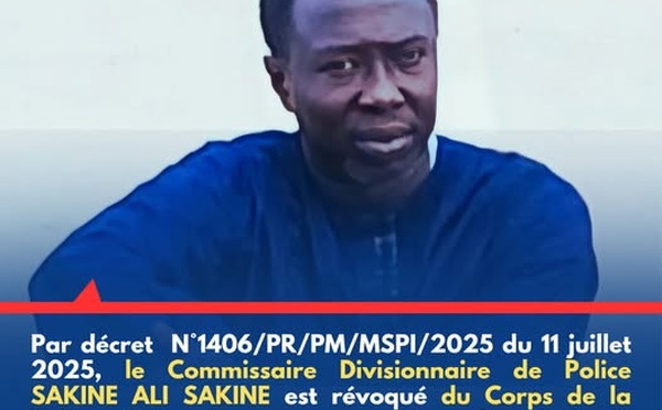 Par décret N°1406/PR/PM/MSPI/2025 du 11 juillet 2025, le Commissaire Divisionnaire de Police SAKINE ALI SAKINE a été...