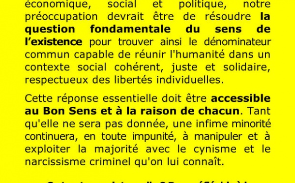Ce texte vous interpelle ? VOILA LA QUESTION La situation économique catastrophique...