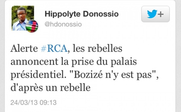 Les rebelles centrafricains de Séléka viennent de rentrer au Palis présidentiel, selon les responsables rebelles....