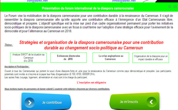 Le forum international de la diaspora camerounaise annoncé du 25 au 27 mai 2017 à Ouagadougou au Burkina faso