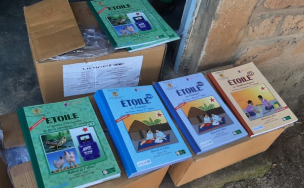À l'école publique de Laramanaye, l'UNICEF a mis à disposition de l'établissement des manuels scolaires destinés aux...