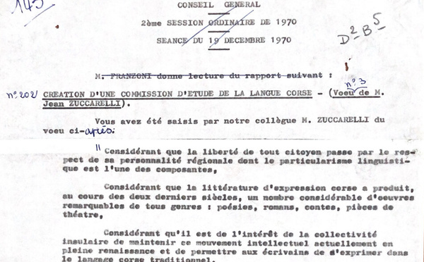 Conseil général de la Corse - débat sur l'orthographe de la langue corse - 1970