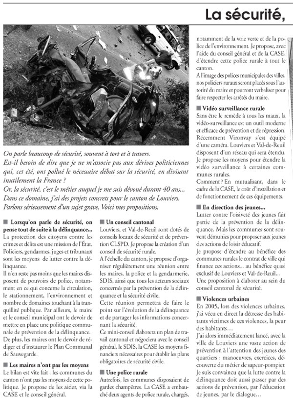 6 propositions pour le canton, dans le domaine de la prévention et de la sécurité.