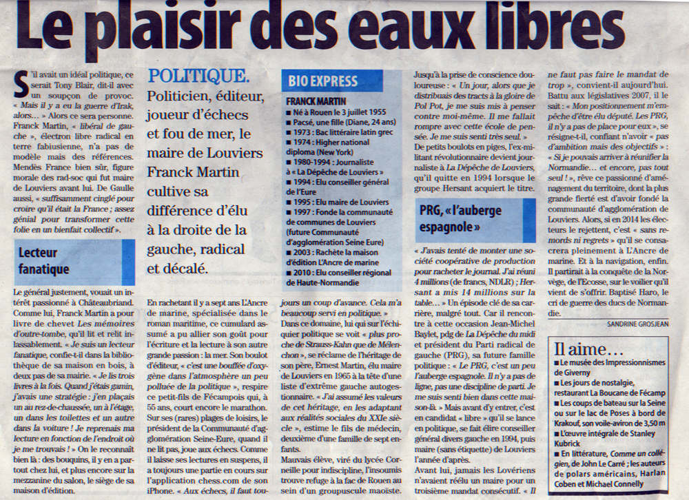 Liberté Dimanche ou Paris Normandie Dimanche, c'est tout comme... Le journal normand du dimanche dresse mon portrait en homme libre, en élu du PRG, parti de la liberté individuelle...
