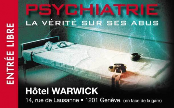 Extrait d'un article publié dans le quotidien "Tribunes Romandes" Genève – Après 18 haltes en Europe en une année, Genève est la prochaine ville qui accueillera l'exposition itinérante « Psychiatrie, la vérité sur ses abus », dont le but est de présenter la véritable histoire de la psychiatrie et d’apporter un éclairage nouveau et complet sur la question du respect des droits de l'homme en psychiatrie. La Commission des Citoyens pour les Droits de l'homme, dont le but est de dénoncer les abus de la psychiatrie et d'apporter des réformes dans le domaine de la santé mentale, organise une exposition du 11 au 22 avril de 10h00 à 21h00 à l'Hôtel Warwick à Genève. L'exposition présente des films inédits sur la réalité de la psychiatrie, et aussi les témoignages de 160 experts et victimes....