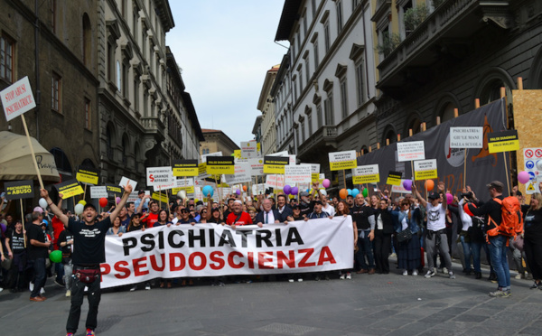 Le 1 er avril 2017, plus de 2000 manifestants européens disent non aux abus psychiatriques ! Plus de 2 000 personnes provenant d'Italie, de France, de Suisse, d'Allemagne, des Pays-Bas et du Danemark ont manifesté contre les mauvais traitements psychiatriques à l’occasion du congrès annuel 2017 de l'EPA (European Psychiatric Association) à Florence. Ce Congrès vise à augmenter l'utilisation des médicaments psychotropes tout en faisant la promotion de la dernière nouveauté psychiatrique : l'implant d'électrodes dans le cerveau du patient. La CCDH a rappelé lors de cette marche que la plupart des membres du conseil d'administration de l'EPA et certains psychiatres composant le Comité Scientifique du Congrès sont connus pour leurs liens avec l'industrie...