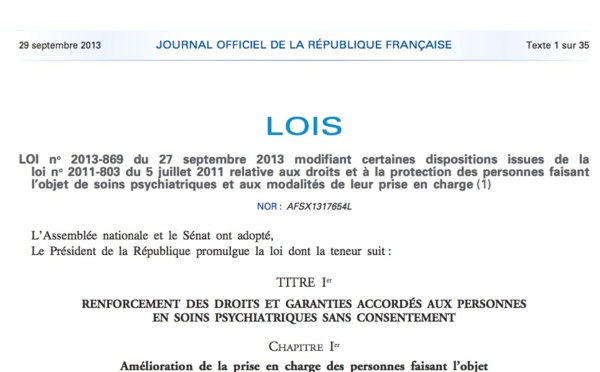 Nouvelle loi sur les soins psychiatriques définitivement adoptée - 01/10/2013