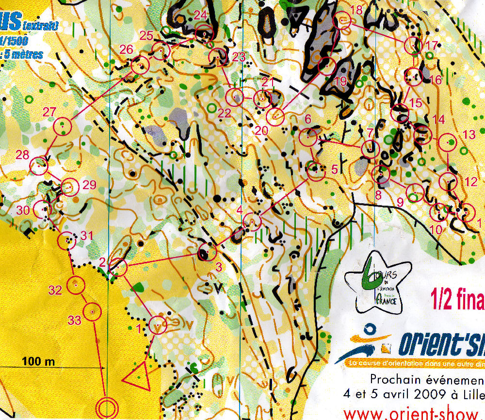 A chaque étape de cet Orientshow, le nombre de balises et la longueur du circuit augmentaient. J'avais donc 33 postes en 1/2 finale. Seules 2 personnes par 1/2 finale passaient en finale, l'étau se resserrait.