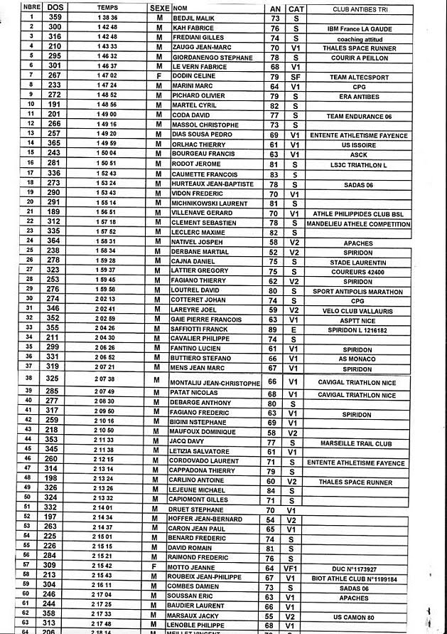 Ci-dessous les classements et l'article de journal paru dans Nice-Matin :