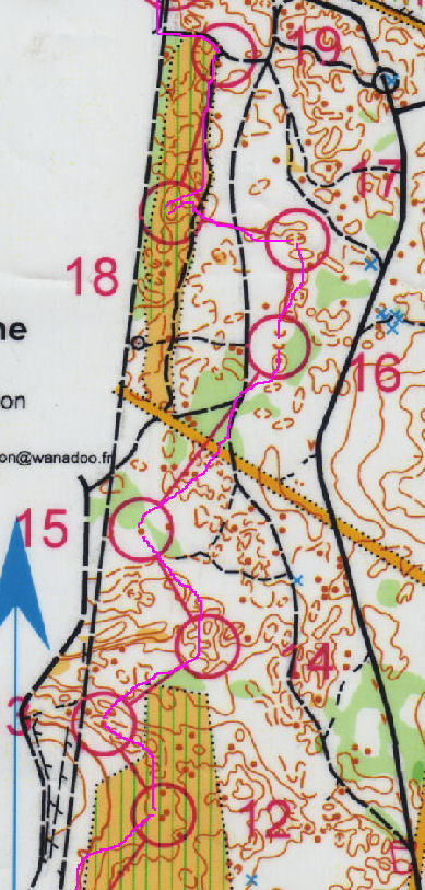 Au poste 12, je pars trop à droite à l’azimut, attirée par le jaune sans vraiment regarder ma boussole je pense.