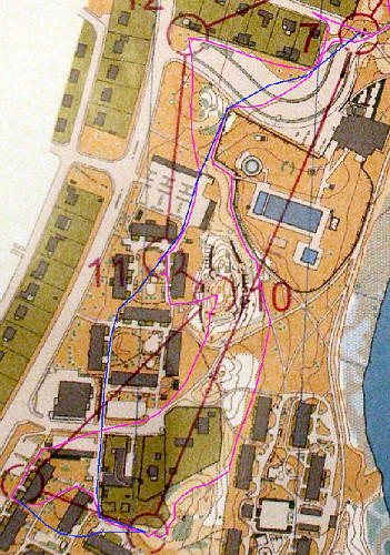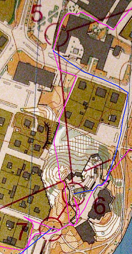 Pour aller au poste 6, je pense le choix le plus rapide était de passer par les escaliers bien à gauche du trait rouge. Je passe dans la forêt : le choix était déjà mauvais, et en plus la forêt était plus sale que prévu, et enfin il fallait contourner le grillage infranchissable : 25’’ de plus pour ce petit tour dans le vide.
