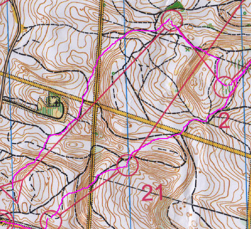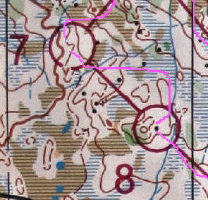 Pour aller au poste 8, je fais une erreur de visée. Heureusement, le relief était assez net et a permis de recaler et redescendre vers le poste.
