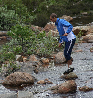 H-15mn : entrée dans le box et c’est parti pour un petit trajet mouillé à travers les tourbières jusqu’au pré-départ, puis départ.