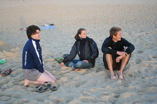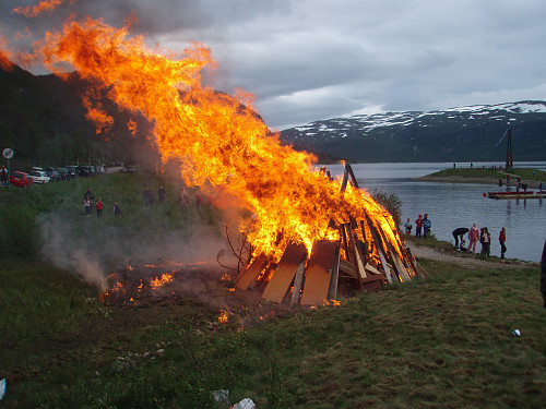 En tentant désespérément de trouver quelquechose à boire devant le majestueux feu de la Saint Jean locale.