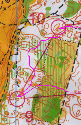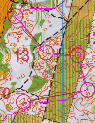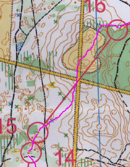 Poste 16, le vert ne passait vraiment pas bien, mais je le contourne assez vite par la droite et je trouve le poste rapidement le long de la limite de végétation.