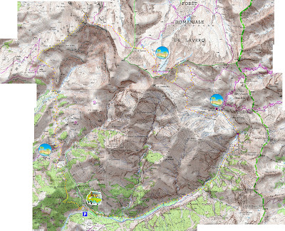 Ci-dessous le parcours avec les tracés de : Simone NIGGLI (1ère - en bleu foncé), Minna KAUPPI (2ème - rose), moi (16ème - bleu clair) :