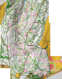 Je savais que ça allait être dur, ça l'a été, j'ai enfin retrouvé des bonnes sensations en orientation, même s'il m'a manqué encore un peu de confiance pour éviter une bonne erreur de choix et une bonne faute en approche entre le poste 5 et le poste 6, alors que tout le reste a été correct avec des bonnes choses : j'ai eu peur d'aller tout droit, à vouloir chercher des chemins à tout prix, et en plus j'ai galéré pour remonter sur mon chemin....... avec les doutes que j'avais dans la tête, j'ai en plus complétement raté l'approche du poste....... bilan, je dois perdre entre 2 et 3 mn sur ce que je suis capable de faire, une faute de trop pour être dans le top 10, mais je suis quand même bien contente de ma course et de cette belle 16ème place même si j'ai vu des étoiles dans la dernière boucle !!!