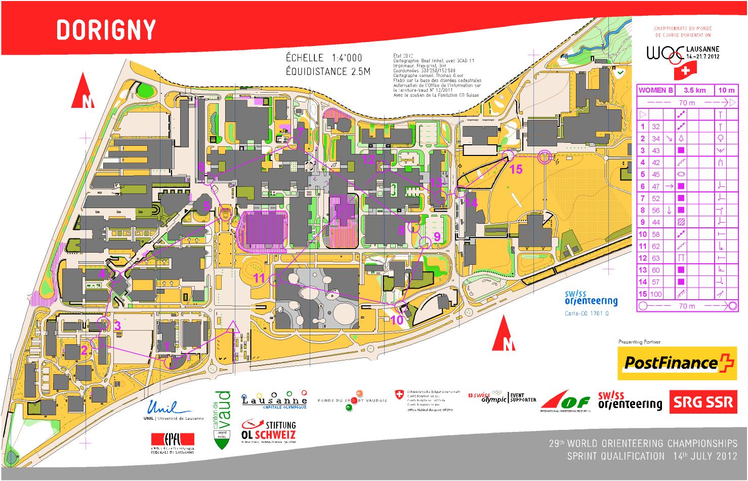 Une journée bien remplie pour débuter les Championnats du Monde de Course d'Orientation 2012 à Lausanne, en Suisse : le matin, courses de qualifications du sprint, et l'après-midi finale pour les 45 meilleures et 45 meilleurs du matin (15 qualifiés par série).