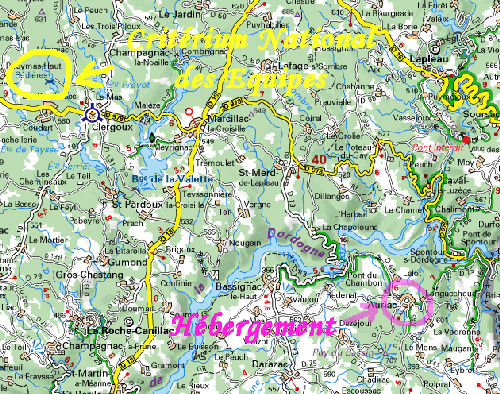 Nous avions le même hébergement que 2 ans auparavant, de l’autre côté de la Dordogne, au calme… mais cette-fois ci sous la pluie, et plus on s’avançait vers la douche chaude tant promise, plus les branches commençaient à envahir dangereusement le sol, comme si une tempête s’était abattue quelques instants auparavant sur le coin, mais peu importait, on était presque arrivés, malgré ce temps si noir qui nous menaçait.