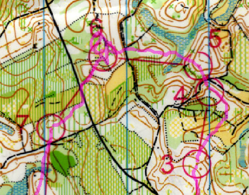 Petite côte pour partir, le 1er poste n’est pas méchant, le 2ème non plus. Je traverse ensuite le gros chemin, pour aller au poste 3, le relief est vraiment flou… il a posé des problèmes à plus d’un d’ailleurs… Merci ma boussole…
