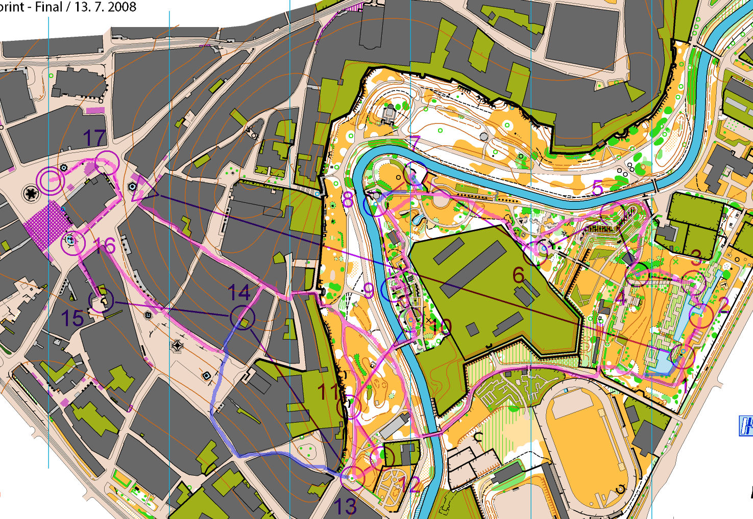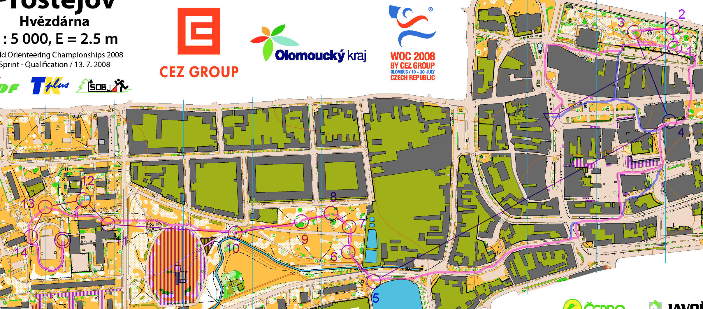 Le matin, direction Prostejov, à 25 mn d'Olomouc, pour la course de qualification sur un terrain relativement plat (10m seulement de dénivelée pendant la course), où d'après ce que nous avions vu des anciennes cartes, il allait falloir courir vite, s'accrocher, et ne pas faire de faute. En effet, il ne semblait pas y avoir beaucoup de pièges, et sur une orientation facile, la "fenêtre" de temps pour passer en finale est réduite et ne laisse pas la place à l'erreur.