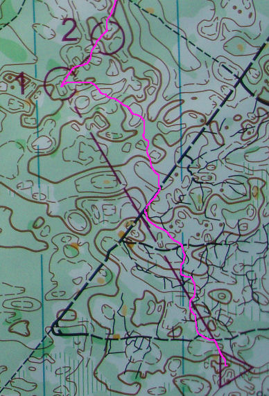 Le poste 1 était assez loin, surprenant et du coup pas très facile à aborder. Je m’engouffre dans les méandres de chemins qui courent mieux que la forêt pour aller jusqu’au chemin, puis j’hésite à couper ou faire le détour pour accéder à l’autre chemin. Je décide de couper, en lisant bien, mais je déconnecte un peu et je suis très imprécise en partant à gauche du chemin vers le poste. J’ai du mal à vraiment recaler, mais je comprends la colline blanche et les dépressions derrière quand j’y passe.